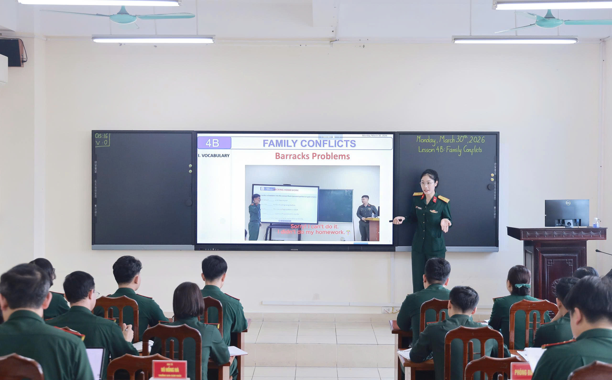 Hai giảng viên dự thi thuộc chuyên ngành Tiếng Anh gồm: Thiếu tá Trần Thị Huệ với bài giảng “Family conflicts” và Thượng úy Vũ Huy Hoàng với bài giảng “Where are you going?”. Căn cứ kết quả bốc thăm nội dung một ngày trước khi thi, các giảng viên tiến hành chuẩn bị và thực hiện 01 tiết dạy trọng tâm. Trong phần thi, giảng viên trình bày trước Ban Giám khảo tại điểm cầu trung tâm và toàn thể giảng viên dự giảng trực tuyến tại Hội trường 350, đồng thời áp dụng các phương pháp dạy học tích cực nhằm nâng cao tương tác, phát triển kỹ năng và kiến thức cho học viên.