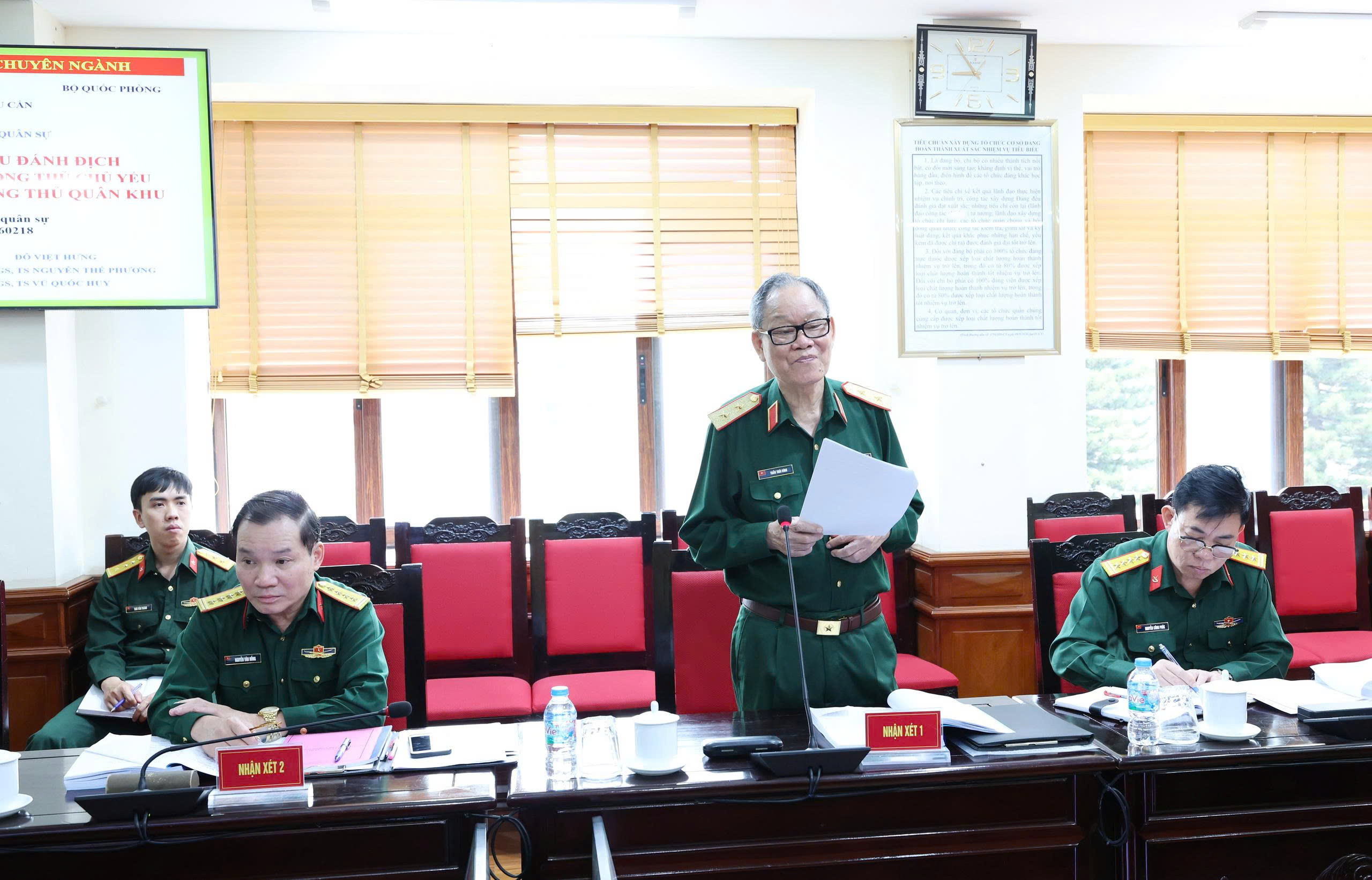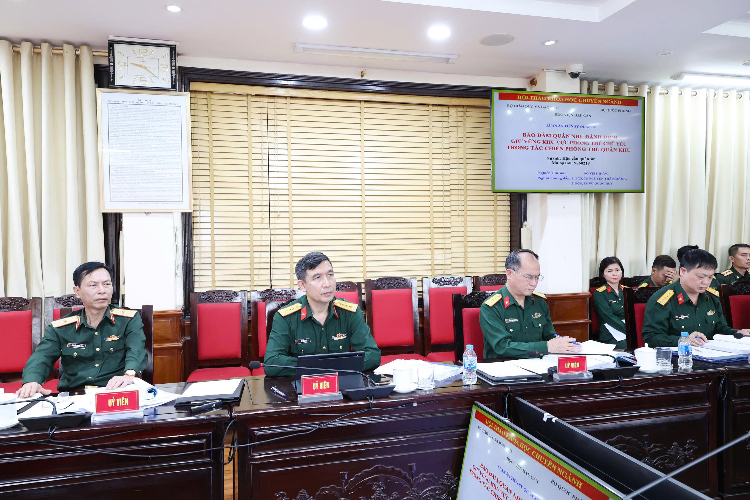 Các ý kiến tại hội thảo đã tập trung phân tích, làm rõ những vấn đề cốt lõi của luận án, từ phạm vi nghiên cứu, cơ sở lý luận, phương pháp tiếp cận đến tính logic, tính khả thi và khả năng vận dụng vào thực tiễn huấn luyện, sẵn sàng chiến đấu của các quân khu hiện nay. Bên cạnh những ưu điểm, Hội đồng cũng chỉ ra một số hạn chế cần tiếp tục nghiên cứu, bổ sung, hoàn thiện; đồng thời định hướng những nội dung trọng tâm để nghiên cứu sinh chỉnh sửa, nâng cao chất lượng luận án.