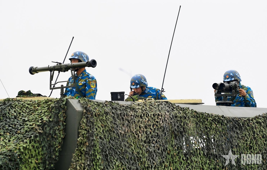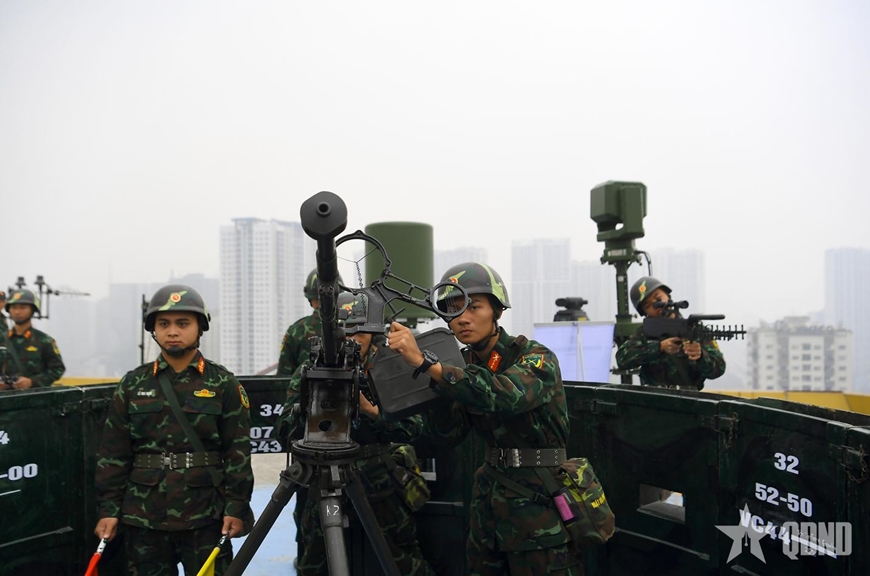 Khẩu đội 12,7mm và tổ chống UAV luyện tập phương án chế áp, tiêu diệt mục tiêu bay không xác định.