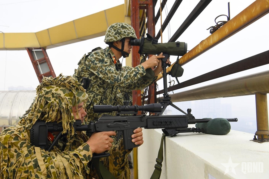 Tổ bắn tỉa thuộc Đội 7 Đặc công Biệt động chống khủng bố, Lữ đoàn Đặc công Biệt động 1 (Binh chủng Đặc công) quan sát, tìm kiếm, phát hiện các mục tiêu khả nghi.