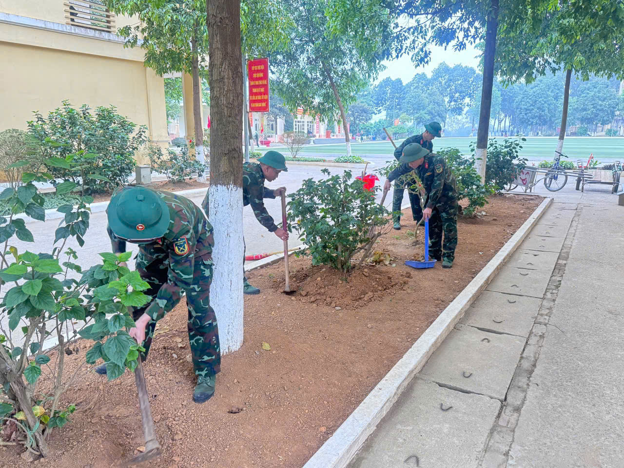 Kết thúc kỳ nghỉ lễ, các Đoàn cơ sở đồng loạt ra quân chỉnh trang cảnh quan môi trường; tổ chức vệ sinh, chăm sóc các công trình thanh niên, bồn hoa, cây cảnh, góp phần xây dựng đơn vị sáng – xanh – sạch – đẹp, sẵn sàng bước vào tuần học tập, công tác mới.