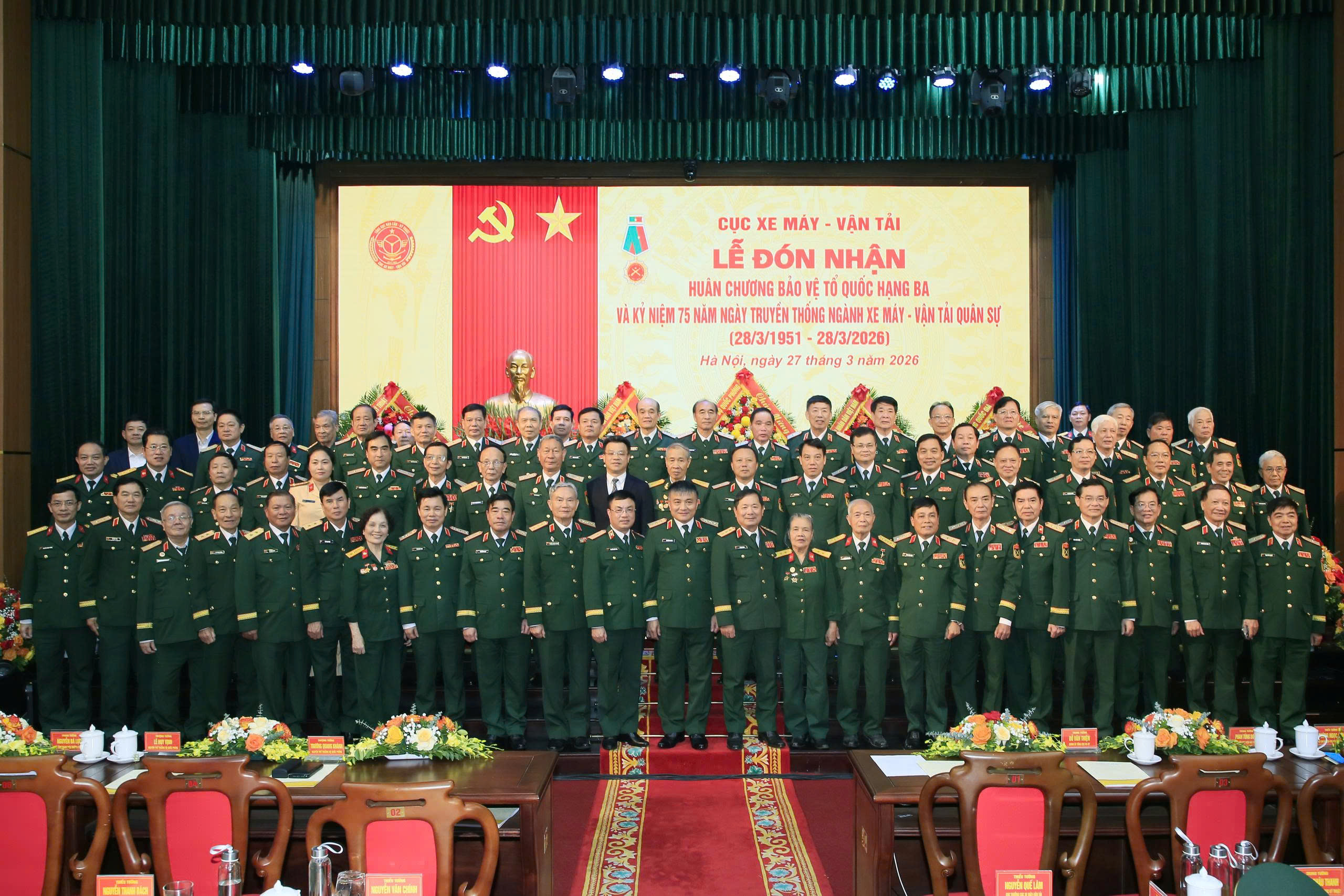 Sáng 27-3, tại Hà Nội, Cục Xe máy - Vận tải (Tổng cục Hậu cần - Kỹ thuật) long trọng tổ chức Lễ đón nhận Huân chương Bảo vệ Tổ quốc hạng Ba và kỷ niệm 75 năm Ngày truyền thống ngành Xe máy - Vận tải quân sự (28-3-1951 / 28-3-2026). Thượng tướng Nguyễn Văn Hiền, Ủy viên Trung ương Đảng, Thứ trưởng Bộ Quốc phòng dự và phát biểu chỉ đạo.