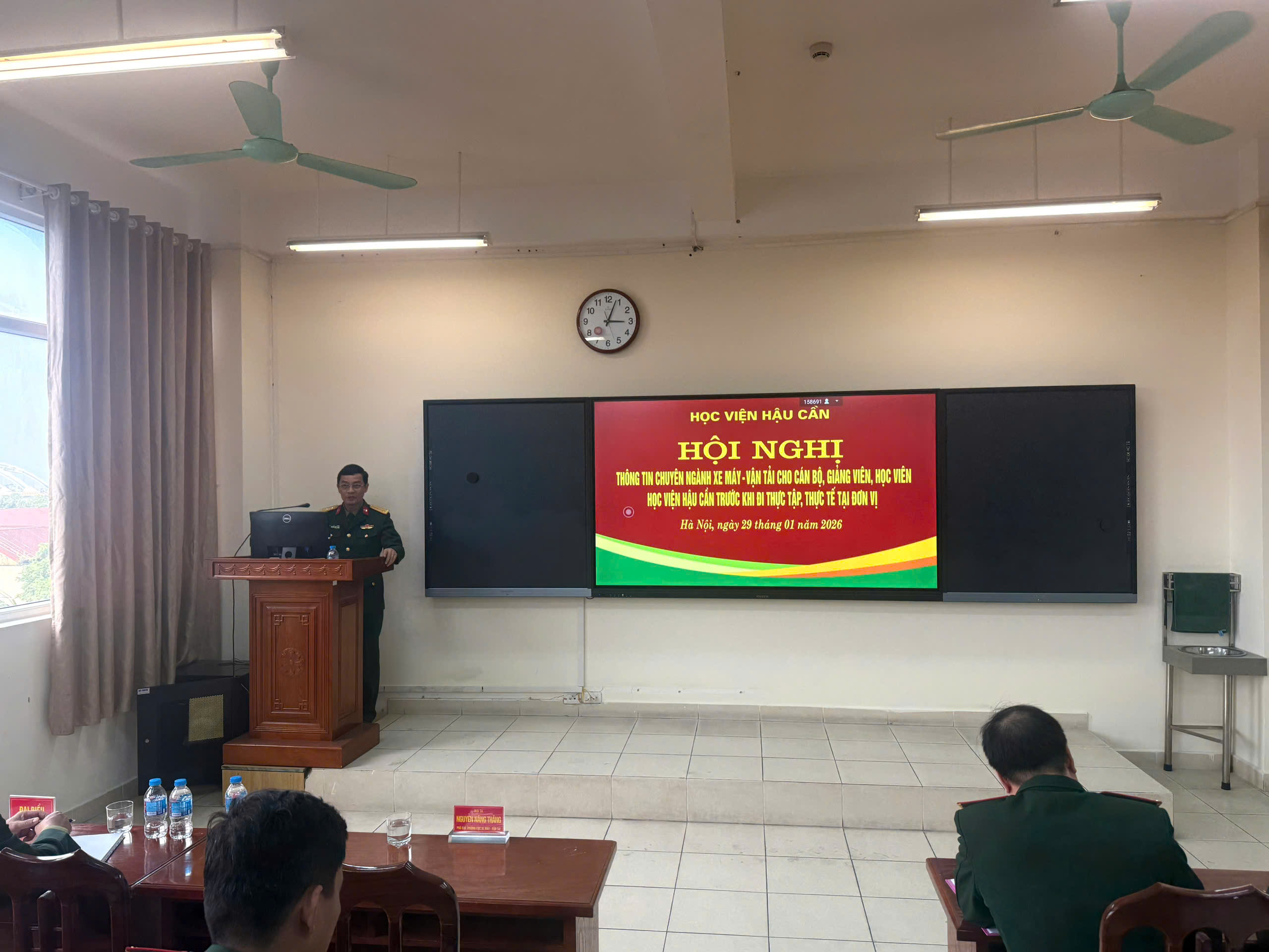 Chiều 29-1, Học viện Hậu cần phối hợp với các cơ quan Bộ Tham mưu và các cục nghiệp vụ thuộc Tổng cục Hậu cần - Kỹ thuật tổ chức phổ biến thông tin chuyên ngành cho cán bộ, giảng viên, học viên của Học viện chuẩn bị đi thực tập tốt nghiệp, thực tế ngắn ngày năm 2026.