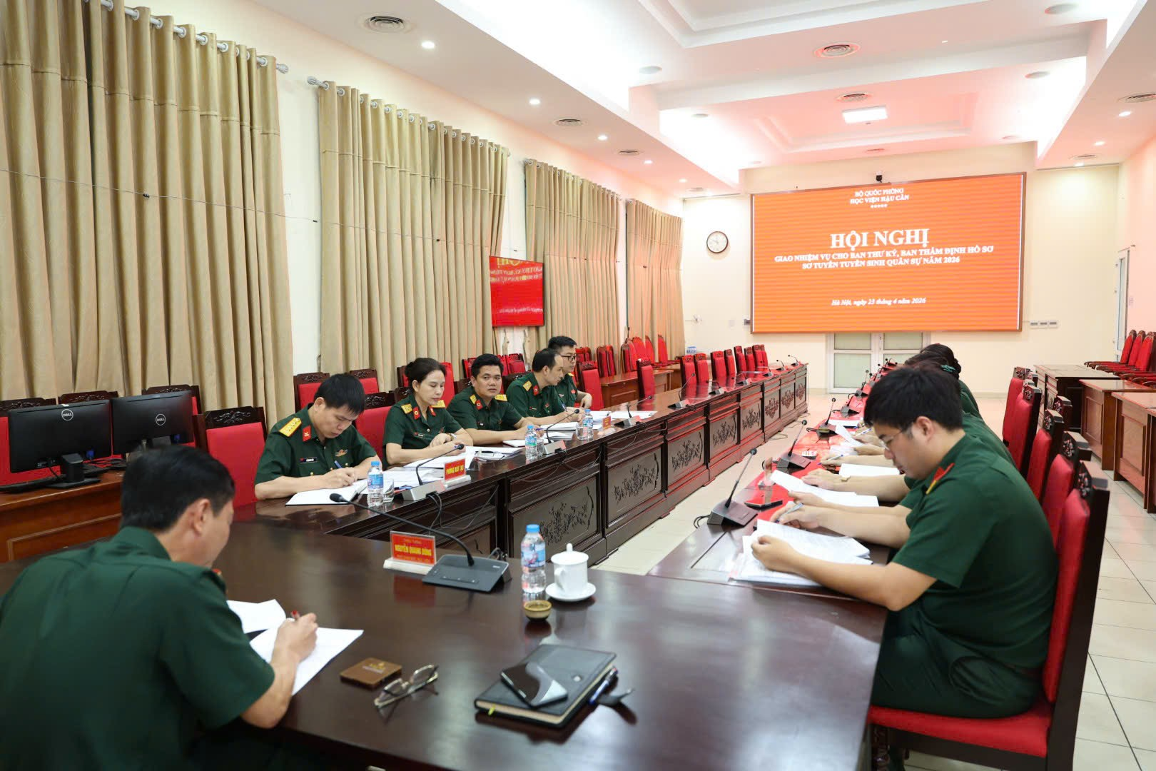 Ngày 02/2, Hội đồng Tuyển sinh Học viện Hậu cần năm 2026 đã tổ chức Hội nghị giao nhiệm vụ cho Ban Thư ký, Tiểu ban Thẩm định hồ sơ sức khỏe và Tiểu ban Thẩm định lý lịch chính trị phục vụ công tác tuyển sinh, nhằm thống nhất nội dung, biện pháp triển khai, bảo đảm chặt chẽ, đúng quy định và tiến độ đề ra. Đồng chí Thiếu tướng, TS Nguyễn Quang Dũng, Phó Giám đốc Học viện, Phó Chủ tịch Thường trực Hội đồng Tuyển sinh Học viện năm 2026 chủ trì hội nghị.