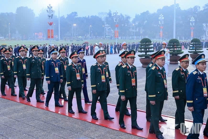 Trung tướng, GS, TS Phan Tùng Sơn cùng các đại biểu dự Đại hội XIV của Đảng vào Lăng viếng Chủ tịch Hồ Chí Minh.