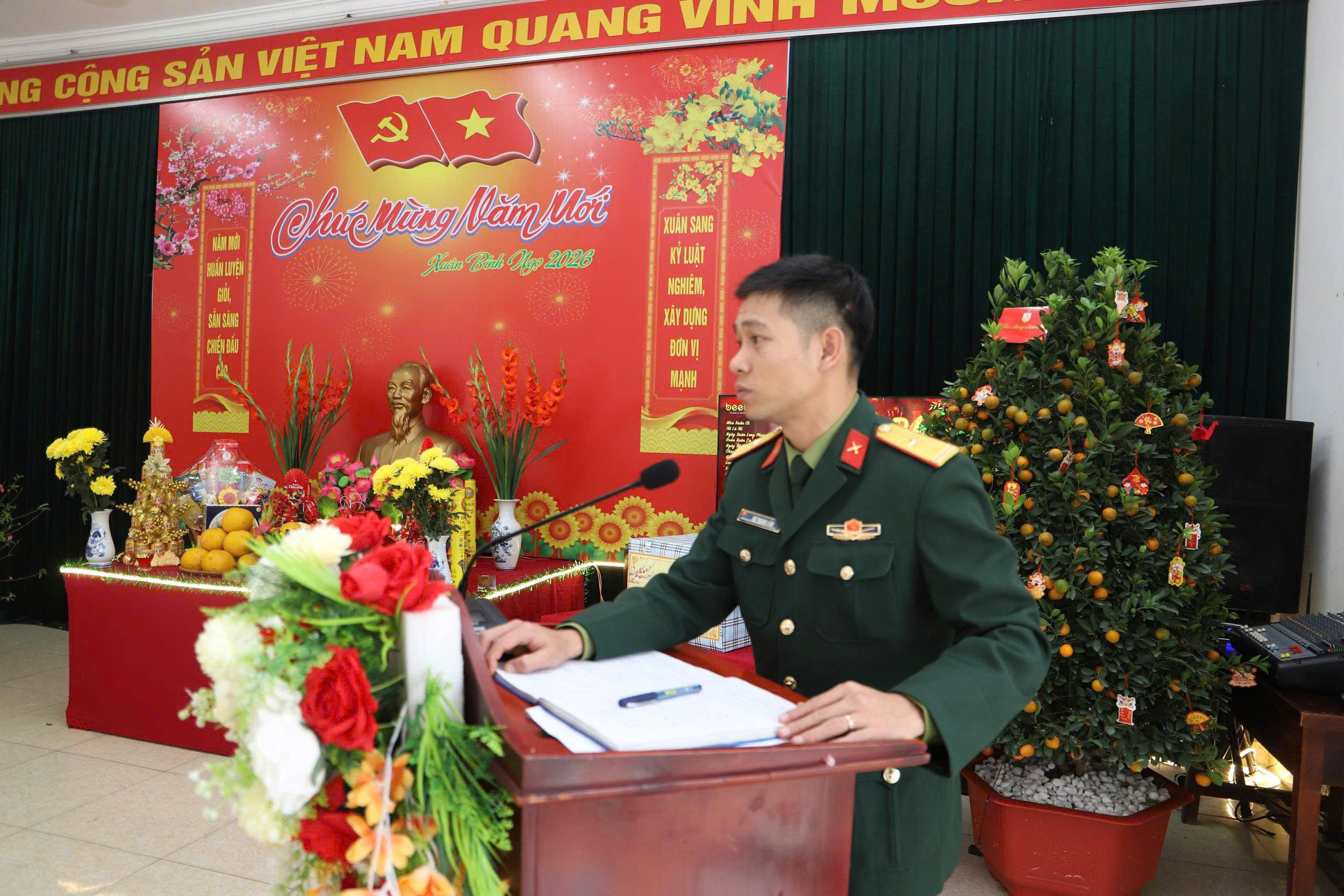 Đại diện chỉ huy Tiểu đoàn 1 phát biểu tại buổi thăm, chúc Tết.