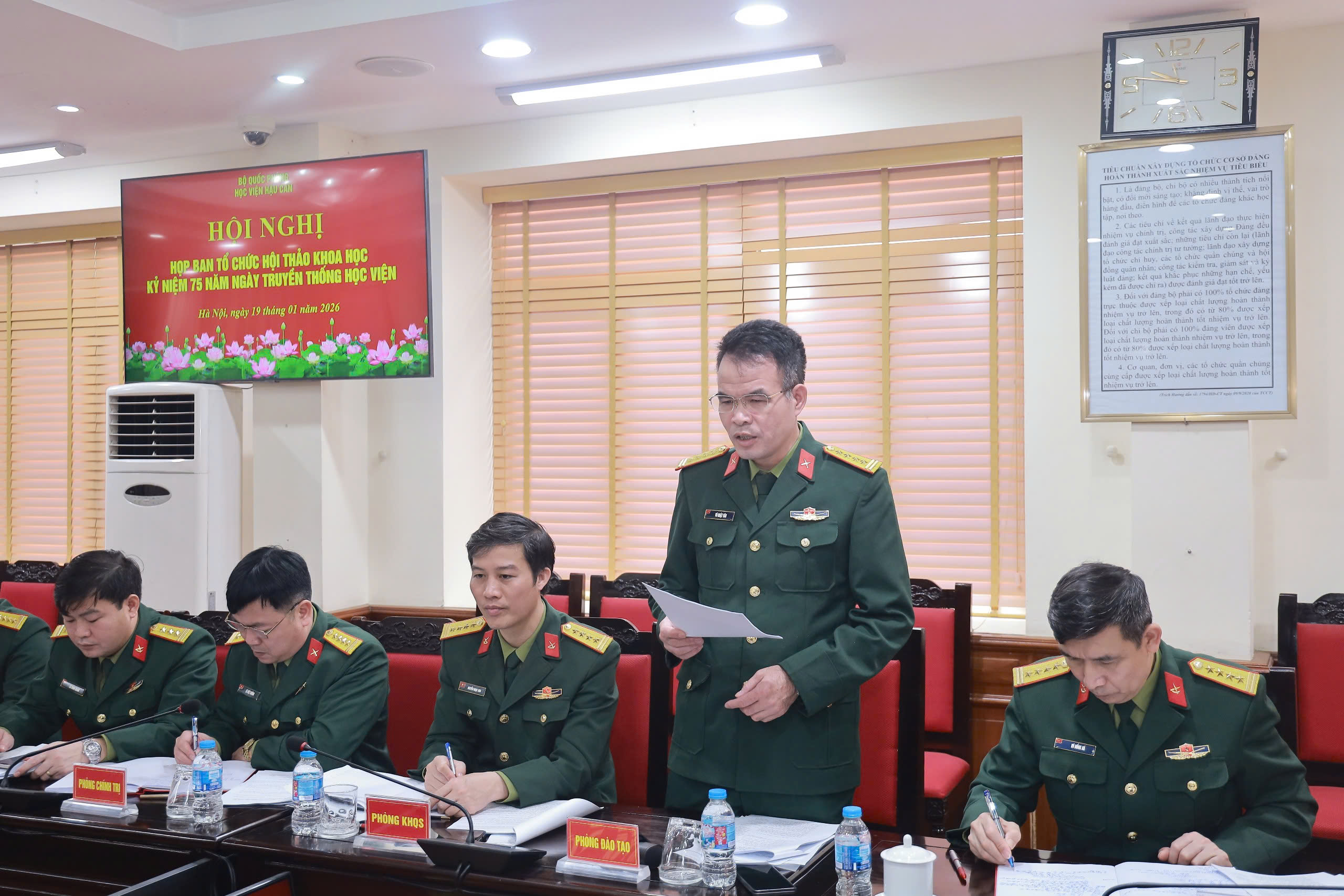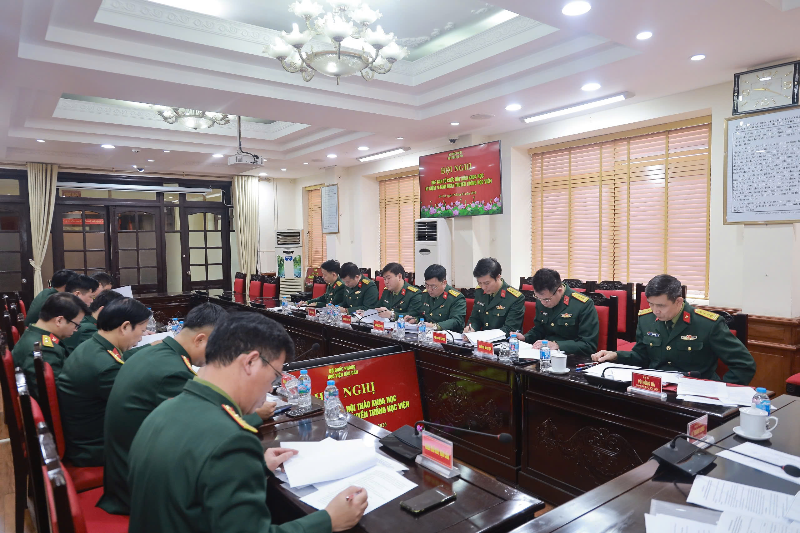Sáng 19-1, Học viện Hậu cần tổ chức Hội nghị Ban Tổ chức Hội thảo khoa học kỷ niệm 75 năm Ngày truyền thống Học viện Hậu cần (15/6/1951 - 15/6/2026) và 30 năm hợp nhất Trường Sĩ quan Hậu cần với Học viện Hậu cần (1996 - 2026). Thiếu tướng, PGS, TS Lê Thành Long, Ủy viên Ban Thường vụ Đảng ủy, Phó Chính ủy Học viện chủ trì hội nghị. Tham dự hội nghị có Đại tá, PGS, TS Vũ Hồng Hà, Phó Giám đốc Học viện; các đồng chí trong Ban Tổ chức Hội thảo; đại biểu là chỉ huy các cơ quan, khoa, đơn vị trực thuộc Học viện và các lực lượng liên quan.