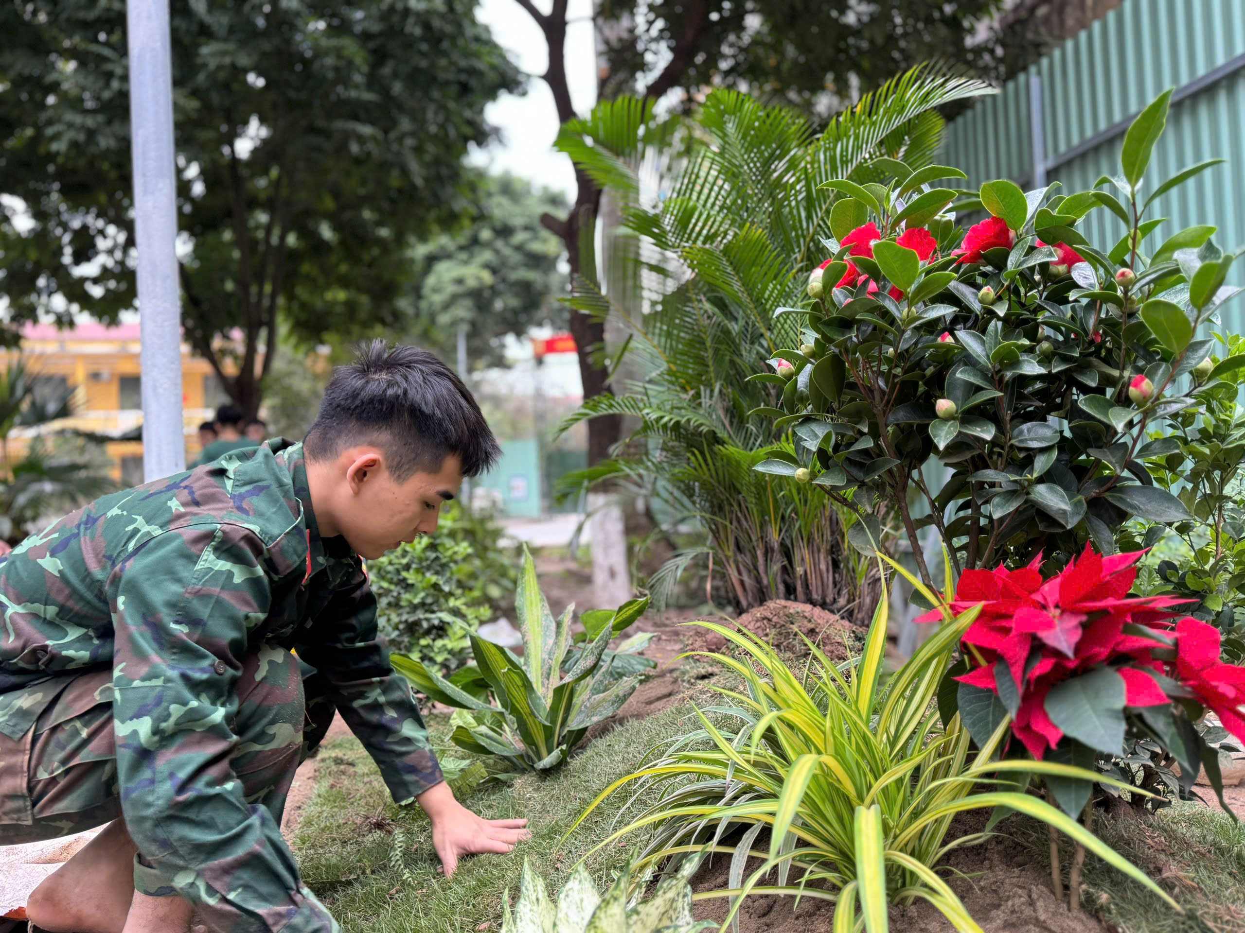 Đoàn viên thanh niên Học viện Hậu cần tích cực tham gia chỉnh trang doanh trại, chuẩn bị đón Tết Nguyên đán Bính Ngọ năm 2026.